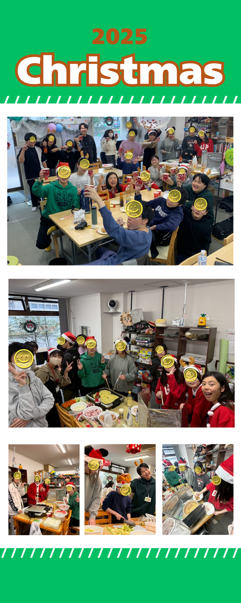 学びの杜の2025年最終日のクリスマスパーティです。 タコ焼きやから揚げを生徒たちと調理したり、クリスマスプレゼント・ビンゴ大会等で今年も盛り上がりました! 明日から生徒たちはしばらく冬のお休み期間。年明け元気に登校してくださいね~。