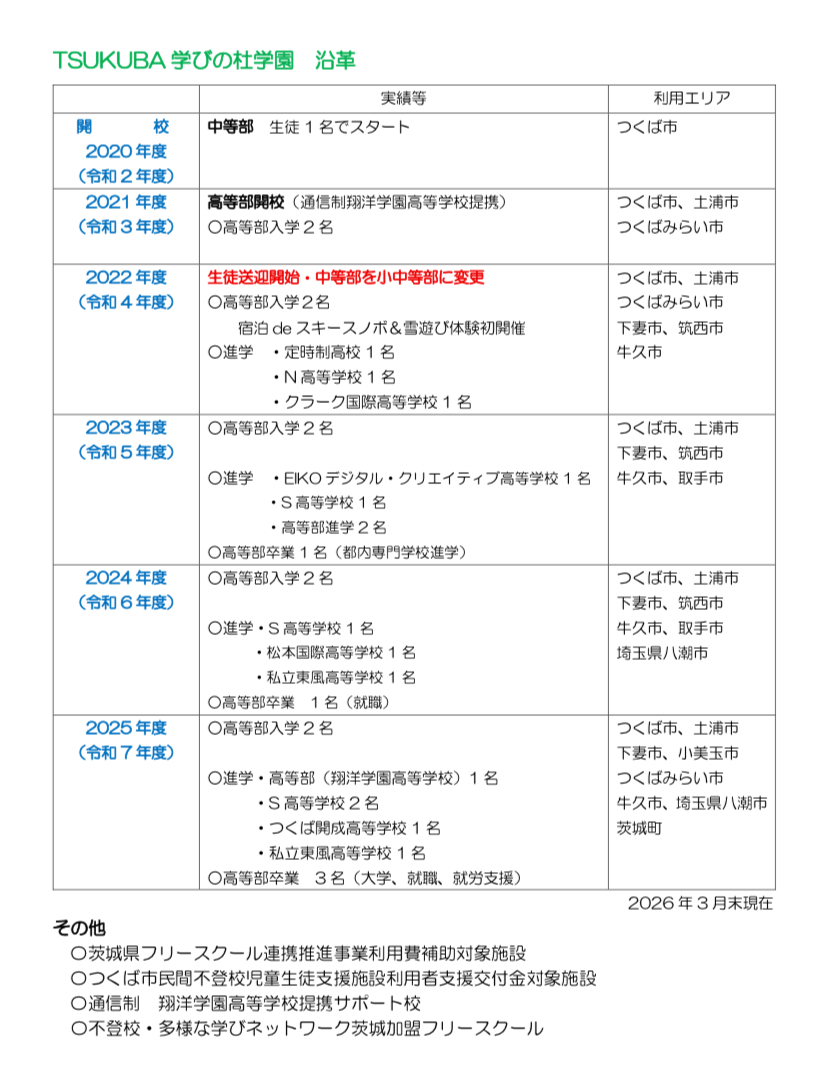 ▢利用エリア・・・地域限定ではありません。つくば市の児童生徒を中心につくば市以外の子どもたちも登校しています。